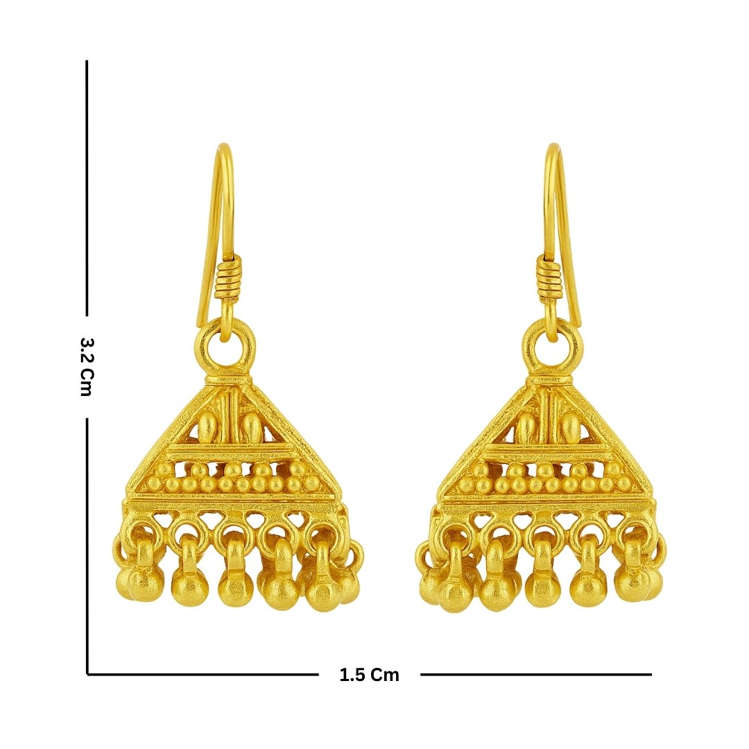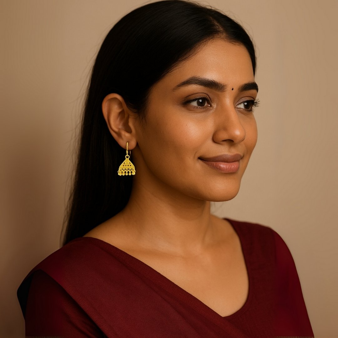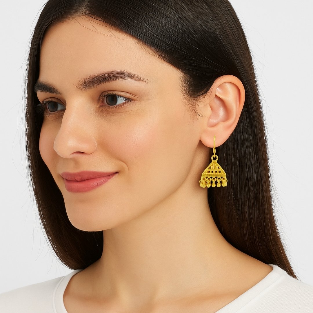 These earrings are plated in high-quality gold polish, giving the luxurious appearance of real gold jewellery while remaining skin-safe and hypoallergenic. Their lightweight build and secure hook closure make them perfect for daily wear or special events like weddings and festivals.