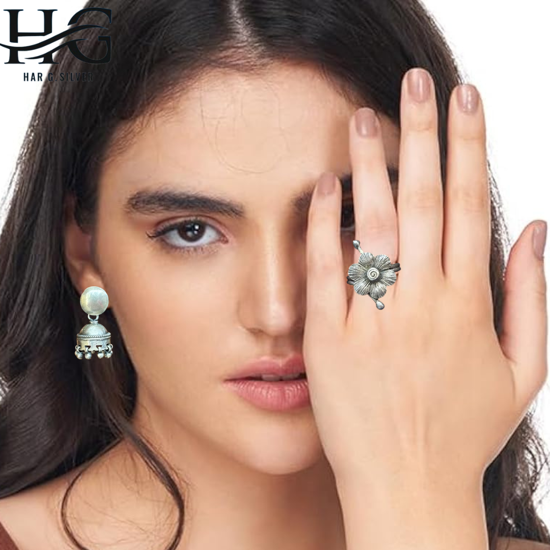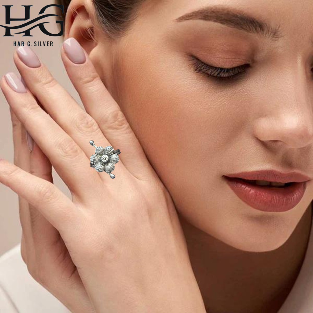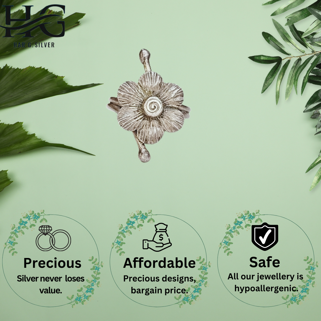 Har G Silver 925 Sterling Silver Floral Design Free Size Adjustable Finger Ring Women’s-grils Perfect for Office, Party, everyday, any occasion wear & Gifting (10)